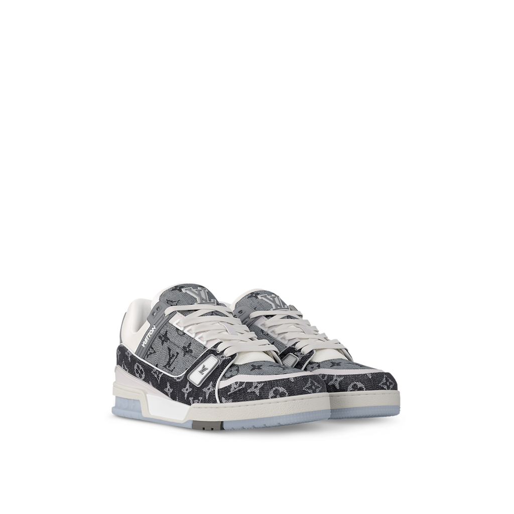 Cette version de la sneaker LV Trainer associe deux nuances de denim Monogram pour obtenir une allure ton sur ton élégante. Elle s'agrémente de lacets bicolores et de signatures en gomme, notamment les LV Initiales. Imaginé à l'origine par Virgil Abloh et inspiré des sneakers de basket-ball vintage, ce soulier repose sur une semelle extérieure en gomme technique ornée de fleurs de Monogram.